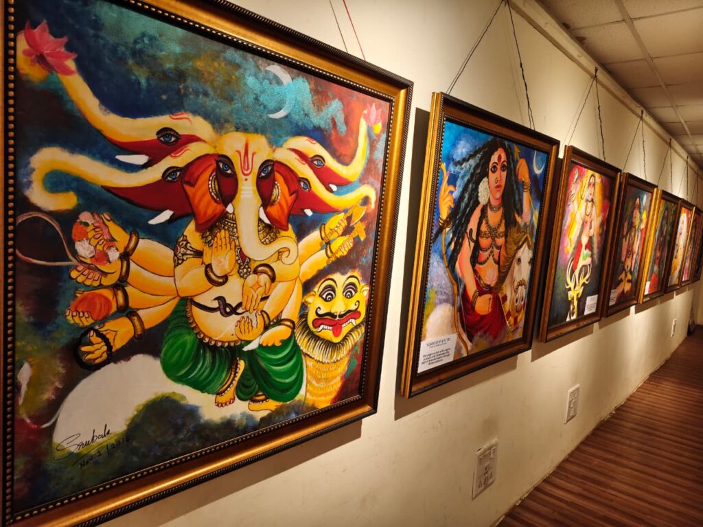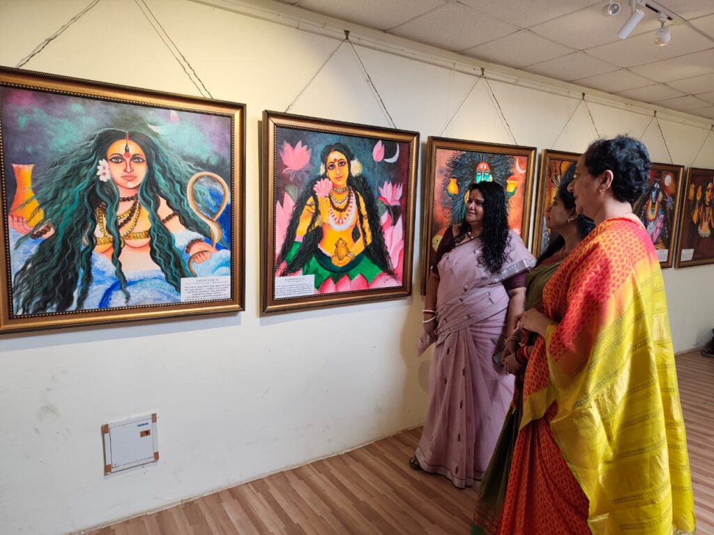 One of the highlights of the exhibition was the painting of Mahamaya, inspired by the sacred tradition of the Hirapur Yogini Temple. The artwork symbolically represents the cosmic force of creation, transformation and divine feminine power while celebrating Odisha’s rich spiritual heritage.
